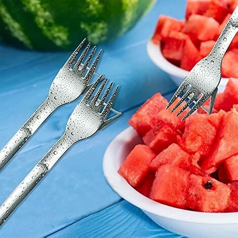 - Forchetta per anguria: è molto comodo mangiare fette di melone con una forchetta, non c’è bisogno di cambiare altri strumenti se ricevere amici o tenere riunioni di famiglia, questo portatile Il coltello per anguria è molto adatto per preparare insalata di melone, piatto di frutta, ecc.