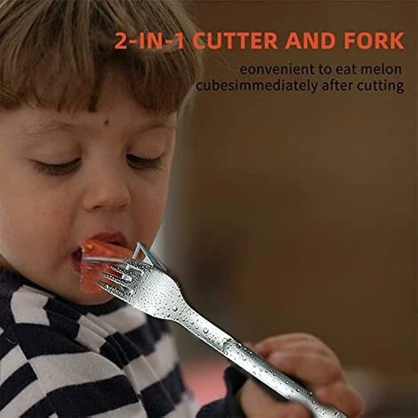 - Taglierina e forchetta 2 in 1: è facile e conveniente mangiare cubetti di melone subito dopo il taglio. Niente più piani di lavoro e tavoli sporchi, bagnati e appiccicosi.