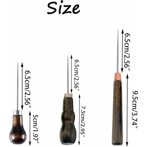 【Materiale】: i 3 punzoni sono realizzati in legno duro e lega. È resistente all’usura, ha un’elevata durezza e non è facile da piegare. 【Dimensioni】: lo stile 1 ha una lunghezza totale di 11,5 cm, lo stile 2 ha una lunghezza totale di 14 cm e lo stile 3 ha una lunghezza totale di 16 cm .【Design ergonomico】: lo strumento di perforazione è progettato con un manico in legno, che è facile da impugnare e ti fa sentire a tuo agio durante il lavoro. La punta dell’ago è fine, affilata, facile da infilare o forare e la punta dell’ago è protetta da un manicotto di plastica per evitare di ferire le persone.la pelle può aiutare facilmente a perforare il tessuto o la pelle, è un pratico strumento di cucito per principianti e appassionati di fai da te in pelle .【Applicazione】: questo strumento di perforazione per cucire è ampiamente utilizzato per cucire, è un ottimo strumento per cucire o riparare pelle di tela, scarpe, suole, borsa, più conveniente per la casa