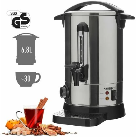 - [Funzione di riscaldamento] Preparati a farti riscaldare! Questo capiente bollitore per vin brulé di AREBOS riscalda, fa bollire o semplicemente mantiene calda qualsiasi tipo di bevanda in modo sicuro ed efficiente. Un apparecchio che sarà sicuramente capace di riscaldarti.