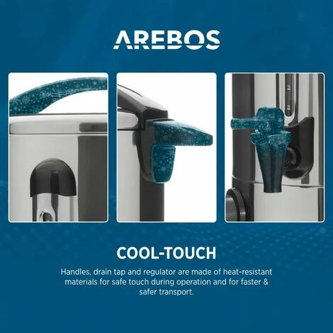 - [Funzione di riscaldamento] Preparati a farti riscaldare! Questo capiente bollitore per vin brulé di AREBOS riscalda, fa bollire o semplicemente mantiene calda qualsiasi tipo di bevanda in modo sicuro ed efficiente. Un apparecchio che sarà sicuramente capace di riscaldarti.