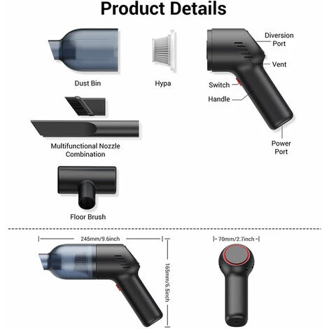 Aspirapolvere Portatile Senza Fili: Mini Aspirapolvere Portatile Ricaricabile Con Potente Aspirazione, Aspirapolvere Portatile Umido E Secco Per Moquette Per Auto.