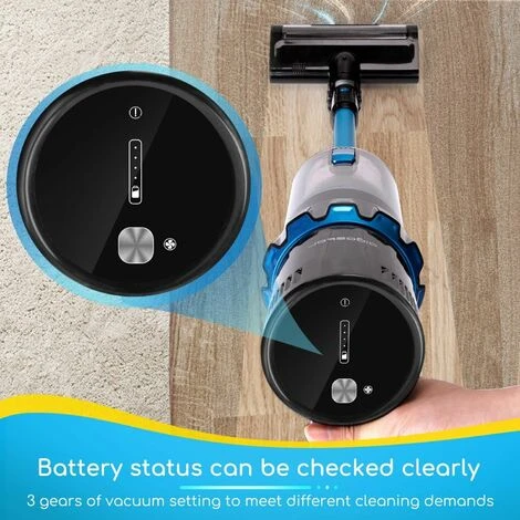 Aspirapolvere senza fili Aigostar, con un motore brushless da 250 W, pu fornire un’aspirazione potente da 23 kPa nella modalit massima, ideale per pulire pi superfici e peli di animali. 3 marce di impostazione del vuoto non solo soddisfano le tue esigenze di pulizia quotidiana, ma massimizzano anche l’efficienza della batteria.