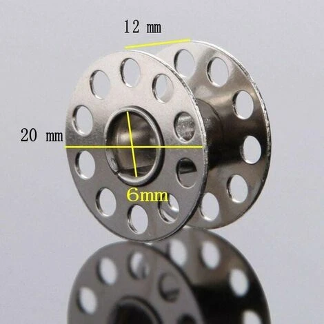 Bobina diametro 21 mm, altezza 12 mm, diametro foro centrale 6 mm. il diametro originale della bobina della tua macchina è di 6 mm, il nostro prodotto è adatto alla tua macchina. Bobina per macchina da cucire Set da 25 pezzi con custodia, filo di cotone non incluso. Br> Materiale: carburo resistente. Bobine metalliche piacevoli, normali, lisce. <