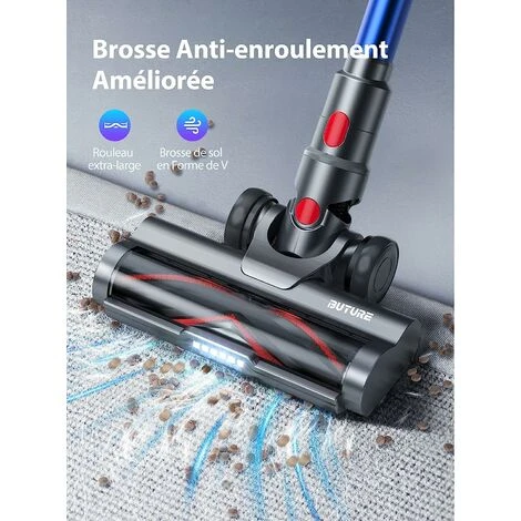 - 【Spazzola universale per moquette anti-groviglio】L’aspirapolvere senza fili BuTure JR500 monta la più avanzata spazzola per pavimenti anti-groviglio, setole morbide/dure sono integrate, non è necessario sostituire la testina durante la pulizia del pavimento/tappeto. La spazzola per pavimenti a V migliorata, pulisce i capelli senza creare grovigli! Silenzioso, ideale per case con animali domestici.