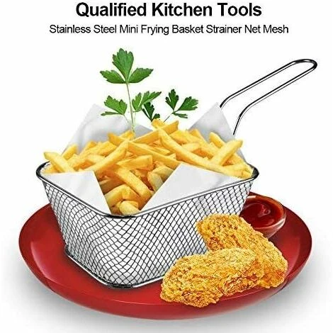 Cestello per friggere in acciaio inossidabile Costruito in acciaio inossidabile di alta qualità, robusto e durevole, privo di corrosione, non si arrugginisce, non si piega, non si rompe o si indebolisce facilmente Il materiale in acciaio inossidabile per uso alimentare consente di toccare direttamente gli alimenti in modo sicuro e facile da pulire Perfetto l’impugnatura in metallo consente alle dita goffe di tenersi ben salde. È anche comodo da riporre poiché il manico può essere appeso al muroPiccolo cestino per patatine fritte ideale per patatine fritte, bastoncini di pollo, anelli di cipolla, gamberetti o qualsiasi altro cibo fritto, potrebbe anche essere un cestino per snack Cestino per patatine fritte individuale ideale per un bar, ristorante o a casa tua, permettendoti di cucinare, bollire o friggere cibi con facilità, molto conveniente