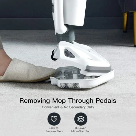 Ritirate l’almohadilla con i piedi. Facile installazione, rimozione dei serbatoi d’acqua e della polvere.