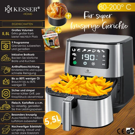 Friggitrice ad aria calda KESSER 1700W in acciaio inox, incluso timer, cestello per il pane e manici cool touch, moderno display touch con LED.