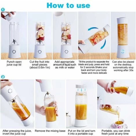 POTENTE E FACILE DA USARE: Con un doppio motore da 7,4V + 4 lame affilate in acciaio inossidabile, bastano solo 10 -20 secondi per preparare un bicchiere di succo, un frappè, un frullato, ecc. Il rigonfiamento dello spoiler all’interno della bottiglia migliora la convezione e la collisione dei frutti, risultando in un sapore più morbido e ricco. Non lascerà residui di frutta e non sarà rumoroso come quelli tradizionali.