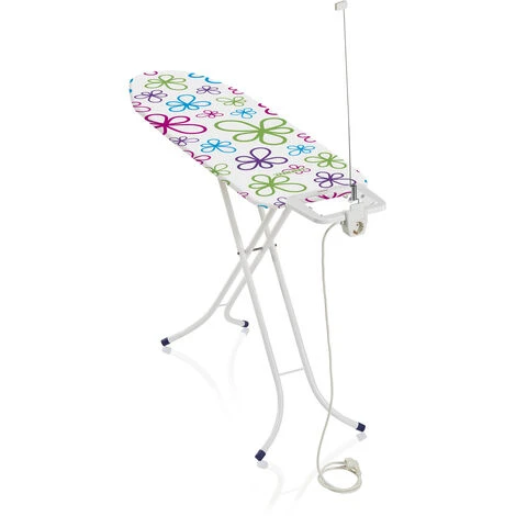 Leifheit 72578. Materiale di rivestimento: Cotone. Dimensione asse da stiro: 1200 x 380 mm, Altezza (min.): 75 cm, Altezza (max): 88 cm Così anche stirare è divertente! la più classica delle assi da stiro vi metterà nel giusto stato d’animo. Il collaudato comfort di Leifheit assicura risultati di stiratura ottimali. La superficie di stiratura imbottita e traspirante al vapore nel formato 120 x 38 cm offre una posizione stabile anche ai ferri da stiro a vapore grazie al ripiano fisso. I due cuscinetti in silicone proteggono dai graffi della piastra del ferro da stiro. Una presa testata VDE e il supporto elastico per cavi consentono di lavorare in tutta comodità e sicurezza, senza l’impaccio del cordone di alimentazione. L’altezza regolabile fino a 88 cm consente a chiunque di stirare con il massimo comfort, indipendentemente dalla corporatura.