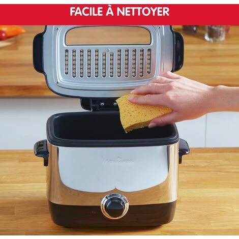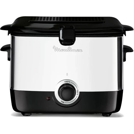 Minifrito 1L Capacidad de aceite: 1L Capacidad de alimentos: 600gr Potencia: 1.000W Estructura de acero inoxidable Bol antiadherente Tapa con bisagras con filtro metalico incluido Ventana en la tapa Termostato ajustable con indicador de temperatura Asas de transporte thermoplasticas