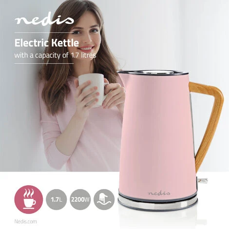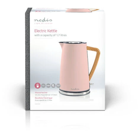 La base girevole a 360° senza cavo garantisce un facile sollevamento; inoltre, il design ergonomico del bollitore consente di versare facilmente il liquido al suo interno anche quando è pieno al massimo della propria capacità. L’elemento riscaldante da 2200 W nascosto e il filtro rimovibile garantiscono costantemente una rapida bollitura dell’acqua, riducendo al minimo l’accumulo di calcare.Questo elegante e potente bollitore elettrico Nedis è gradevole nell’aspetto e funziona altrettanto bene: presenta un’ampia capacità di 1,7 l, offre tempi di bollitura rapidi ed è progettato per ridurre al minimo qualsiasi accumulo di calcare. La combinazione di finiture in acciaio inossidabile, legno e gomma in tinta rende il nostro bollitore un complemento elegante, durevole e facile da pulire per la tua cucina. È progettato per contenere una quantità di acqua sufficiente per sei-otto tazze per ogni bollitura, in modo che nessuno degli ospiti debba attendere troppo a lungo la propria tazza di tè o caffè.
