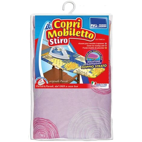 Copriasse da stiro dal tessuto esterno 100% cotone e imbottitura interna 100% poliestere. Misura: 110×60 cm. Colori e fantasie assortiti. Prodotto italiano ben rifinito e lavabile a mano o in lavatrice a 30°, protegge il vostro copriasse permettendo una facile stiratura. Consigli d’uso: al primo utilizzo si consiglia di passare il ferro da stiro caldo sul telo. Contenuto della confezione
