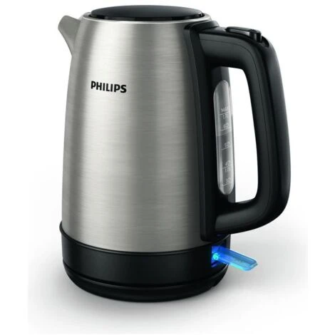 Philips Daily Collection Bollitore in metallo da 1,7 l con spia e coperchio a molla. Capacità tanica acqua: 1,7 L. Potenza: 2200 W. Colore del prodotto: Acciaio inossidabile, Materiale della scocca: Acciaio inossidabile, Polipropilene (PP), Indicatore del livello dell’acqua. Senza filo. Filtro