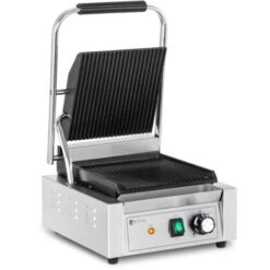 L’alloggiamento della piastra tostapane è realizzato in robusto acciaio inox, che risulta estremamente igienico. Il materiale resiste a danni meccanici, sporcizia, corrosione e resti di alimenti. La griglia dispone anche di una ciotola di raccolta del grasso in acciaio inox rimovibile, che raccoglie il grasso durante la preparazione. Grazie a questa, alla spazzola inclusa nella spedizione e ai materiali utilizzati, la pulizia della piastra per panini risulta estremamente semplice.