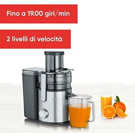 Severin ES 3570 Centrifuga Compatta 800W Con Tubo Di Riempimento XXL E 2 Velocità, Centrifuga Elettrica Con Capacità Succo 1.1 L E 2.5 L Di Polpa, Centrifuga Frutta E Verdura, Nero