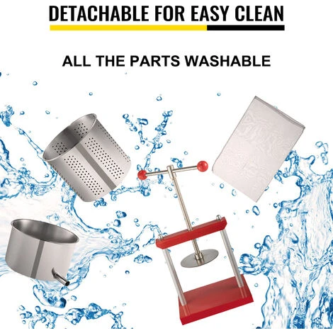- 【FACILMENTE DIVENTARE E PULIRE】 – A differenza degli spremiagrumi elettrici, questo pressore manuale per la produzione di vino e succhi richiama l’attenzione su un facile lavaggio. Tutte le parti di questa pressa per frutta sono staccabili, dalla cui comodità puoi metterle in acqua per una pulizia accurata.